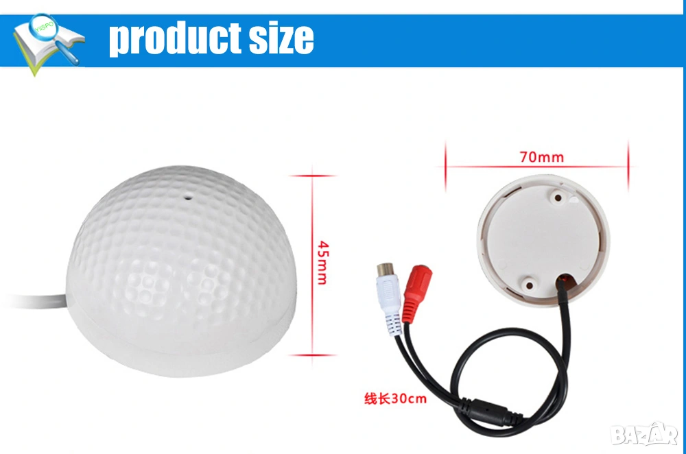от 7.5 евро е Модел 1: Куполен Аудио Мониторинг CCTV Микрофон за Видеонаблюдение с Регулируема Чувствителност