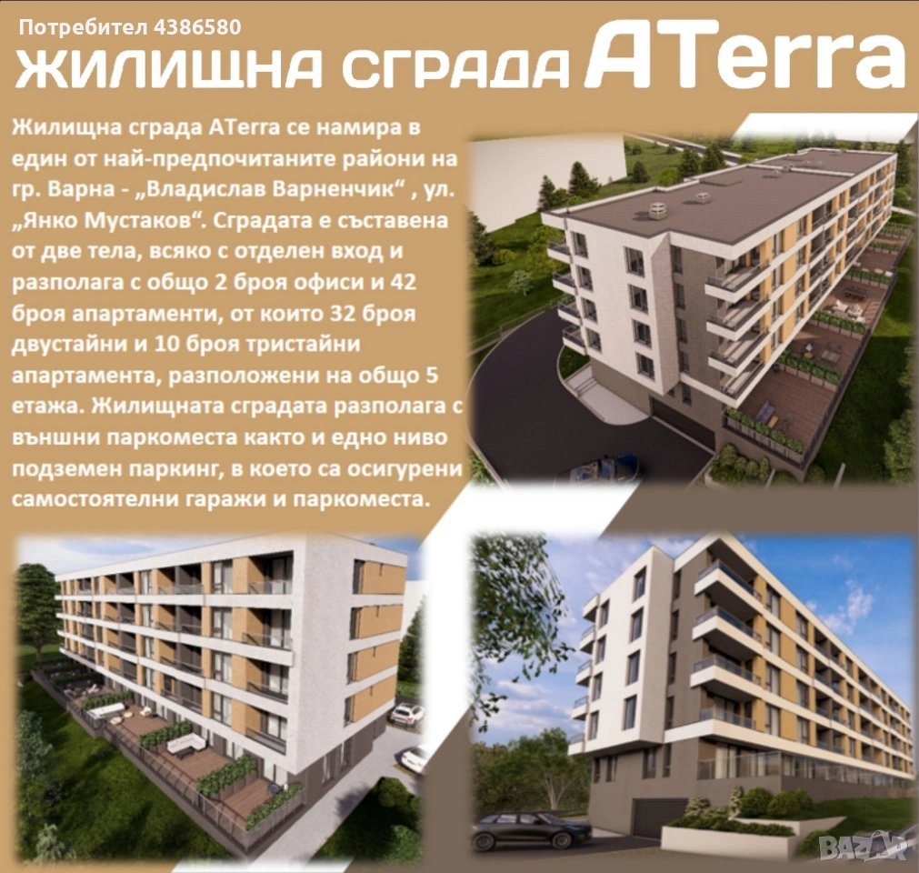 Опция за закупуване на подземно паркомясто или гараж; открити паркоместа с контролиран достъп.