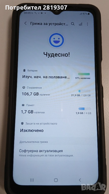 Samsung Galaxy A12 в черен цвят с вътрешна памет от 128GB и 4GB RAM + подарък кейс.
