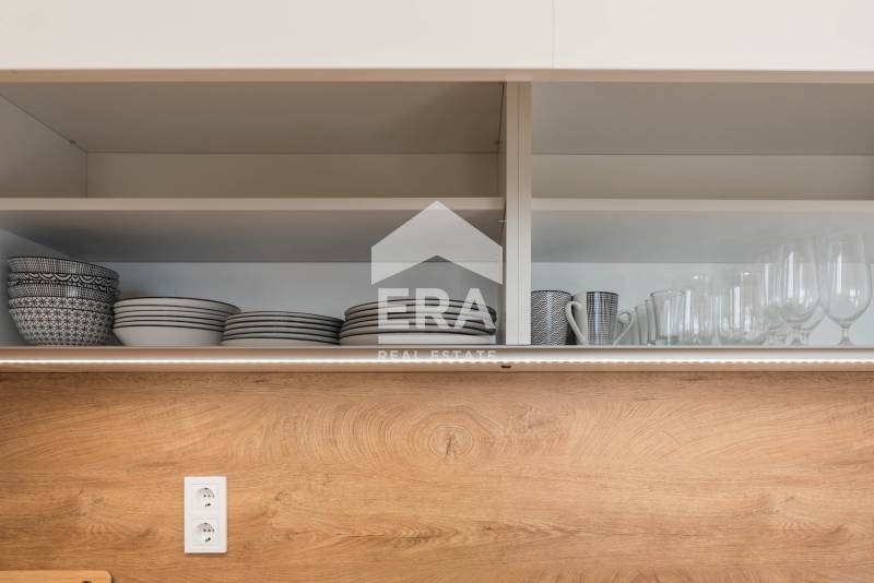Жилището е чисто ново. Продава се напълно обзаведено с италиански мебели по поръчка, оборудвано с висок клас ел. уреди и всичко необходимо за едно домакинство (включително посуда), за комфортно и уютно обитаване. Има климатици и в двете стаи. Подовите покрития са ламинат и теракот. Поставени са стилни осветителни тела, кафява ПВЦ дограма, домофонна система. Имотът е подходящ и за инвестиция чрез отдаване под наем - дългосрочно или за нощувки.