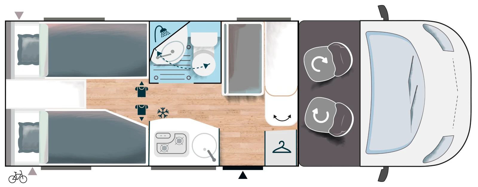 Bulgaria Camper е официален вносител на едни от най-престижните марки кемпери LaMarca, GiottiLine, Notin, Ahorn и представител на брандовете Challenger, Roller Team, Mobilvetta, CI. Наличен за доставка веднага. CHAUSSON S697GA ___________________ Дизелов двигател 2. 0L 170 HP / 125 kW / 6-степенна автоматична скоростна кутия Ръчна климатизация на кабината Въздушна възглавница за водача и пътника Въртящи се седалки в кабината, с двойни подлакътници и регулируема височина Калъфи за седалки в кабината с подходящи възглавници Огледала за обратно виждане с електрическо размразяване Темпомат и ограничител на скоростта ESP Изключителна черна предна решетка на кабината Stop&Start Вградено и изолирано стъпало Панорамен оберлихт Flyscreen врата Прозорци с двойно заключване с комбинирани щори/комаранти Вътрешни изотермични щори на кабината 100% LED клетъчно осветление отвътре USB портове IRP структура: GRP на покрива/пода/страните, с дебелина 64 mm Технибокс Ексклузивни тонирани полиестерни външни стени Кодирана предна броня 16" лети джанти черни Нова задна броня Автоматично светещи фарове и чистачки Фарове за мъгла Обгръщащи се щори в кабината Ексклузивни мебели и дамаски Изключителна екстериорна декорация Ексклузивни материи SPORT Изключително пространство за съхранение Изключителен цвят Sport Matter Предварително настроена камера за заден ход Отопление с гориво на автомобила, използвано по време на път Предварително окабелен слънчев панел (готов за MPPT) Предупреждение за сблъсък Наблюдение при пресичане на пътното платно FCW Комплект аксесоари: Външна тента, слънчев панел, осветление на отвън, предварително зададени двойни батерии AGM, обгръщащи щори на кабината, двойни разширение на леглата ___________________________ Кемпера разполага с всичко необходимо за едно приятно и удобно преживяване на път. За повече информация и оглед, моля свържете се с нас на посочения телефонен номер. Заповядате в нашия шоурум за оглед! Софийски околовръстен път " 82" , 1404 София