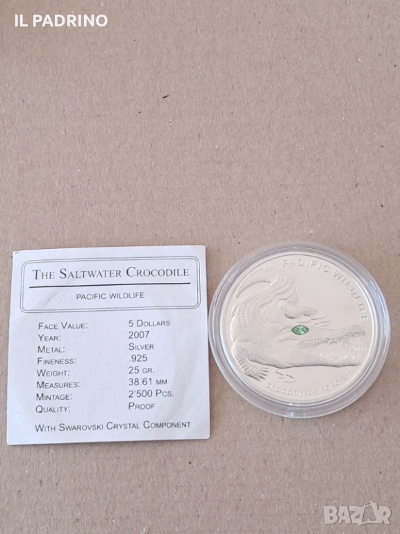 Сребро Палау крокодил с камък Сваровски 5долара 25грама проба 925, снимка 1 - Нумизматика и бонистика - 53121190 Сребро Палау крокодил с камък Сваровски 5долара 25грама проба 925, снимка 2 - Нумизматика и бонистика - 53121190 Сребро Палау крокодил с камък Сваровски 5долара 25грама проба 925, снимка 3 - Нумизматика и бонистика - 53121190 1/3