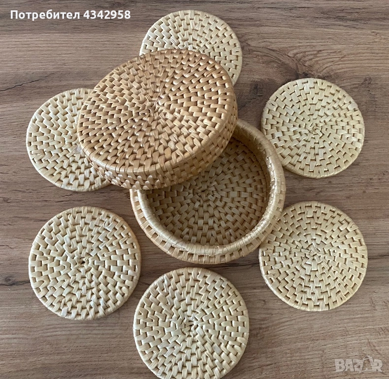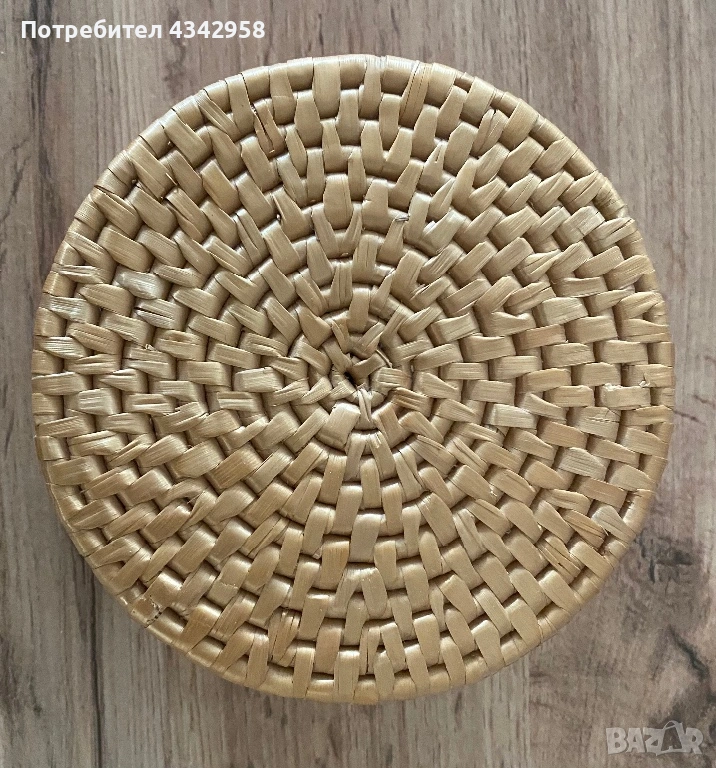Vintage.Ръчно плетен комплект от ратан. Кошничка + 6 подложки.
