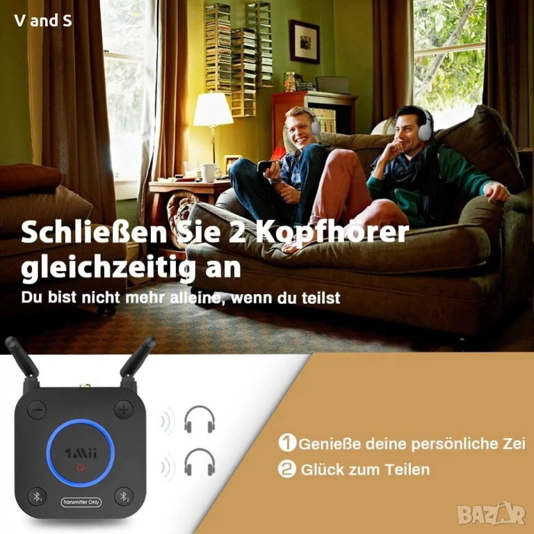 【Споделяне на телевизия, двойно щастие】Bluetooth TV адаптерът B06TX има функция „двойна връзка“, която ви позволява да свържете две Bluetooth слушалки/високоговорители едновременно и да споделяте телевизора със семейството/приятелите/любимите си с този Bluetooth аудио предавател за телевизор.