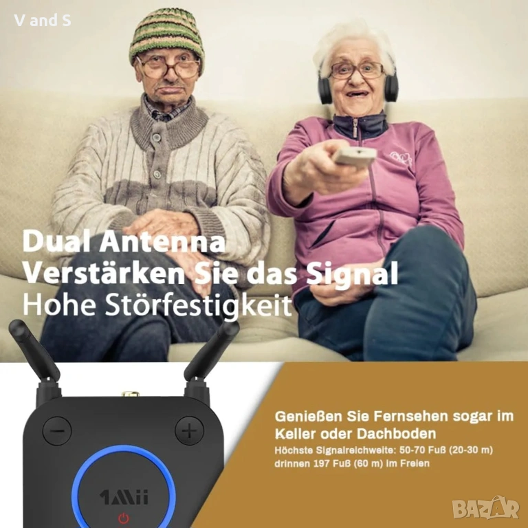 Разширен обхват: Bluetooth предавателят 1Mii е оборудван с двойна антенна система и технология Blutooth 5.2, за да осигури на вашите Bluetooth устройства по-стабилен и мощен Bluetooth сигнал. Обхватът може да бъде до 50 метра (164 фута) на открито и до 20-30 метра (50-70 фута) на закрито без препятствия.