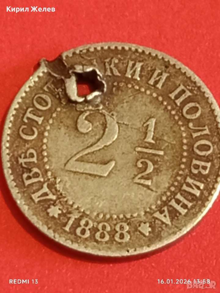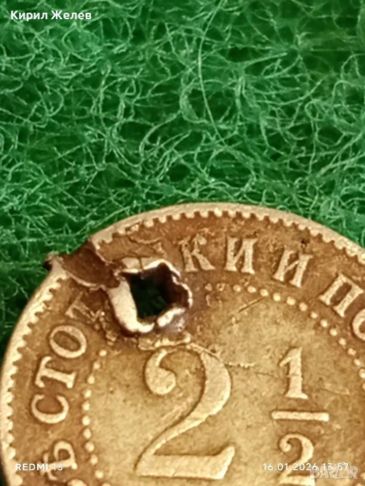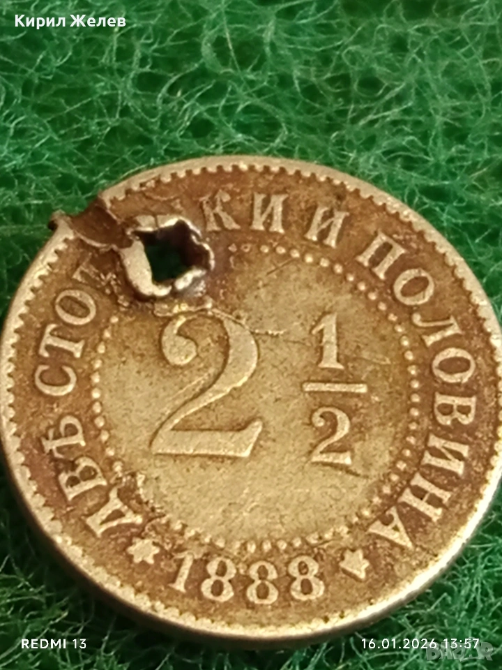 Рядка монета 2 1/2 стотинки 1888г. Княжество България за КОЛЕКЦИЯ 53145