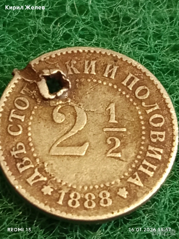 Рядка монета 2 1/2 стотинки 1888г. Княжество България за КОЛЕКЦИЯ 53145 → Обява 53121388