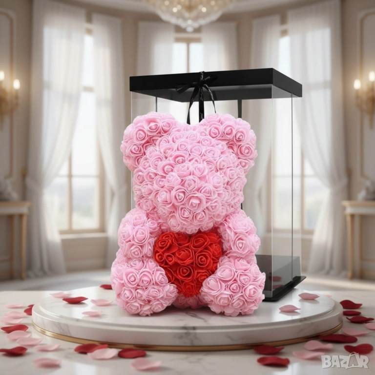 Мече от рози с подаръчна кутия в 3 размера → Обява 53121401