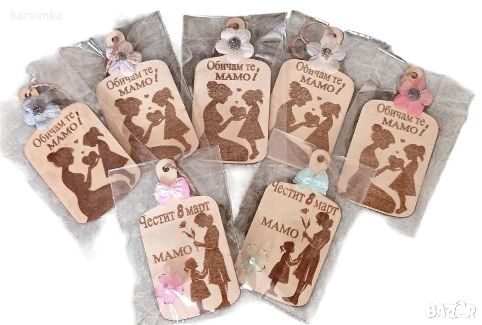 Дървени магнити с гравирано послание и декорация 2€