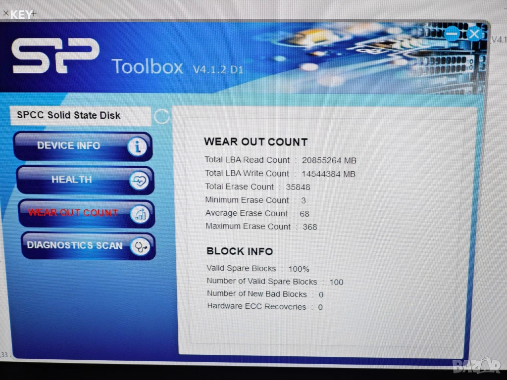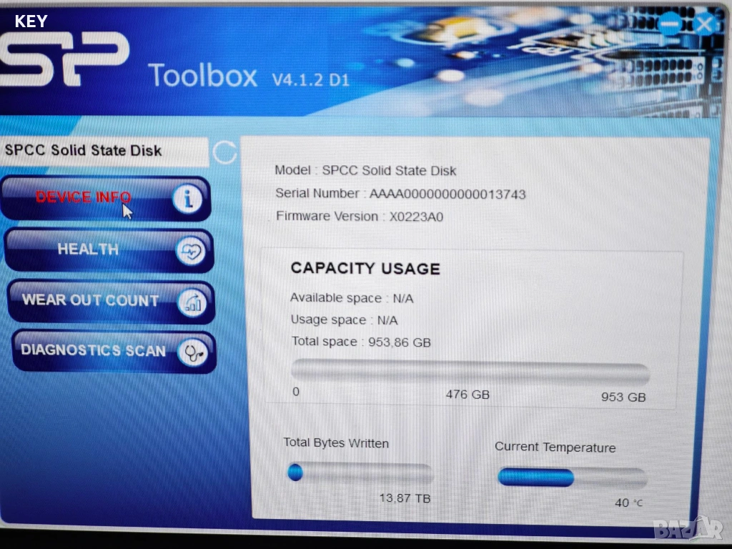 Снимките са от SP Toolbox - фабричния софтуер на Silicon Power.