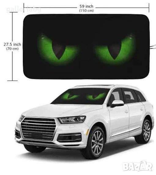 Слънцезащитен сенник за предно стъкло с зелени очи – UV защита за кола