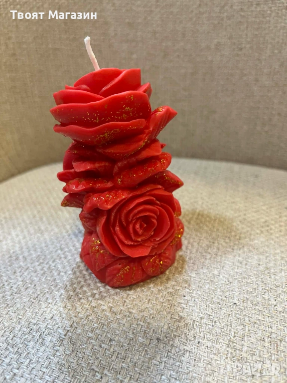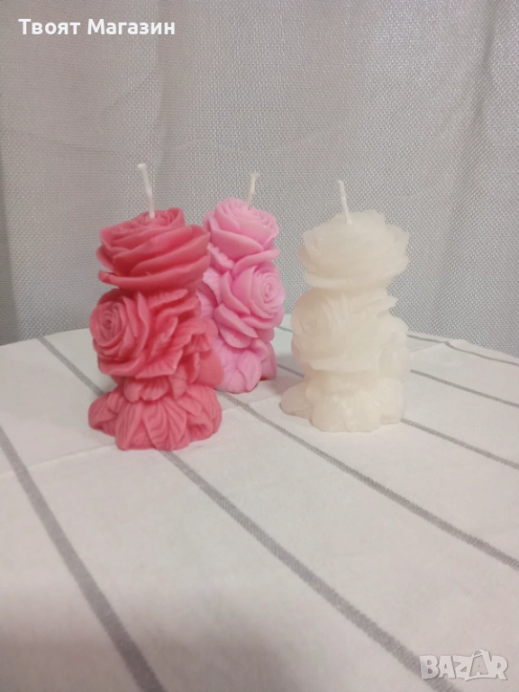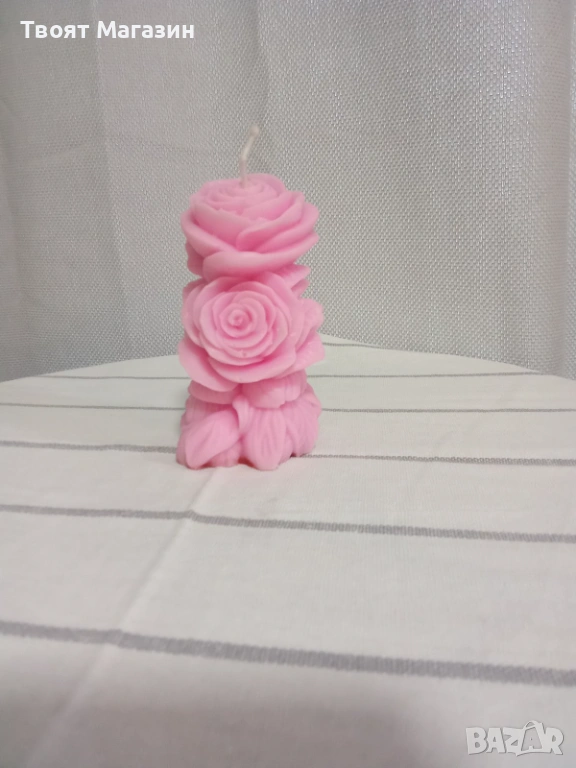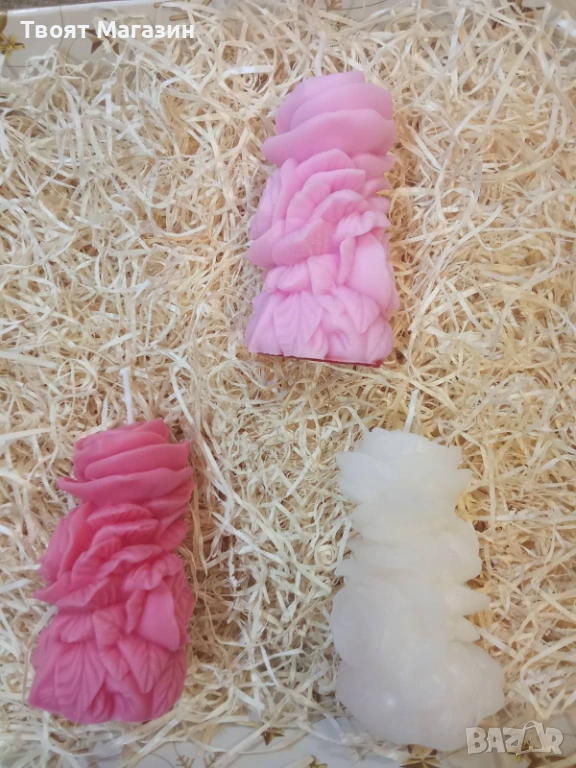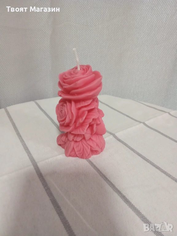 Соева роза: Изработена от 100% натурален соев восък в нежен бебешко розов цвят.