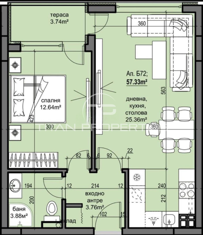 С Акт 16 !!! Титан Пропъртис има удоволствието да Ви представи двустаен апаратамент в новопостроен комплекс, находящ се в кв. Христо Смирненски, в близост до търговски обекти, мазазини, аптеки, спирки на градски транспорт.