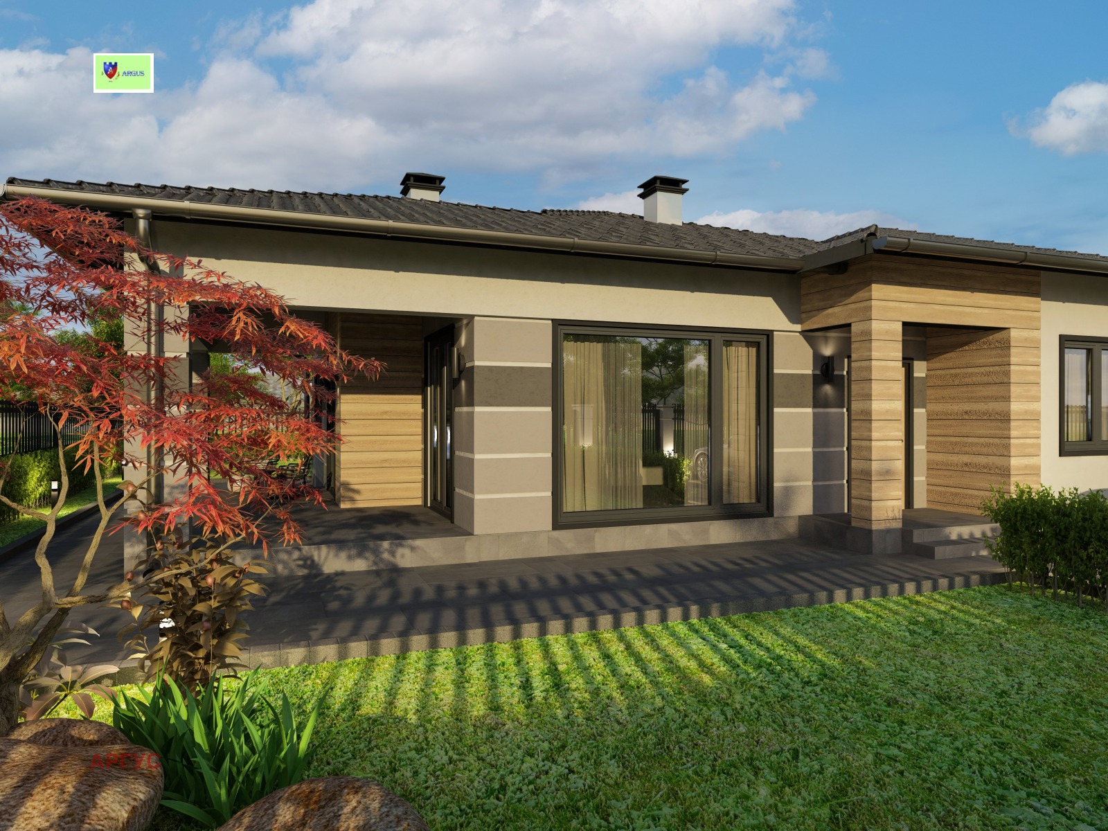 Допълнителна информация за конструкцията на къщите: стоманобетонни основи, метална носеща конструкция и дървена конструкция за покрива. Покрив керамични керемиди, топлоизолация с минерална вата, окачен таван с гипсокартон. Фасадните стени ще са изградени по метода после слоен монтаж система W361 , аквапанел външно монтиран на щендерна конструкция, каменна вата 10см, един слой гипсокартон, отново камена вата 10 см, два слоя гипсокартон монтиран на щендерна конструкция от вътре, система W112 . Върху аквапанел XPS 2 см. оформящ визията на фасадата, минерална мазилка, в определени зони с дървесен ефект, цокъл с естествен камък. Фасадна ПВЦ дограма Kömmerling 76 АД 5 камери, цвят отвън антрацит,отвътре бял цвят. Вътрешни преградни стени, система W112 гипсокартон монтиран на щендерна конструкция и пълнеж вата за шумо и топлоизолация. ВиК инсталация до тапа. Отоплителна инсталация до тапа, с изградени серпентини за водно подово отопление. Заготовки за монтаж на котел. Изградена електроинсталация, вентилационна инсталация. Ще бъде изградена ограда тип BKR по границата на парцела, пешеходна и портална врата. Изградени алеи от стоманобетон около сградата и към пешеходната врата. Изградена поливна система и минимално озеленяване на парцела. Изграден път със скална маса от асфалтовия / за село Храбърска/ до имота. Входна метална врата. Гаражна сегментна термоизолирана врата.