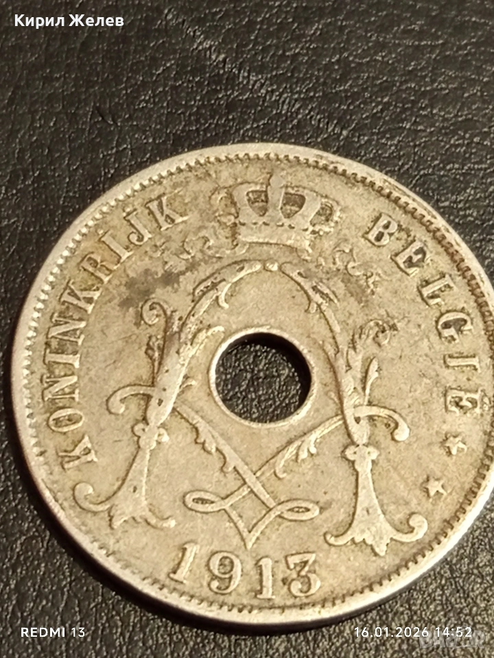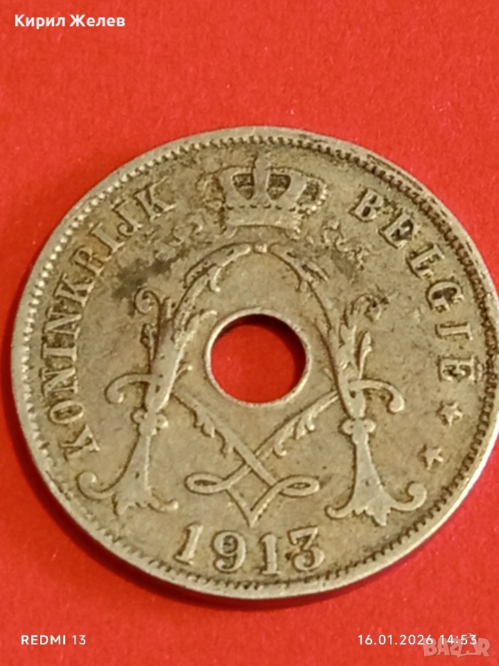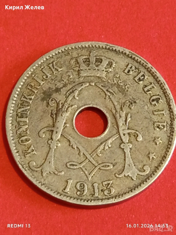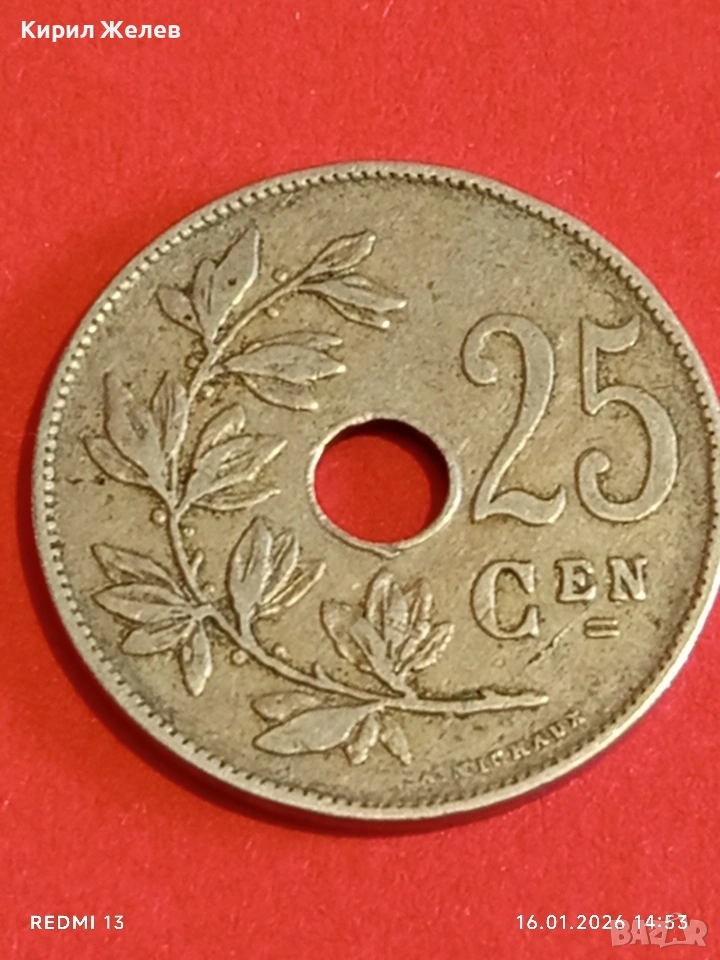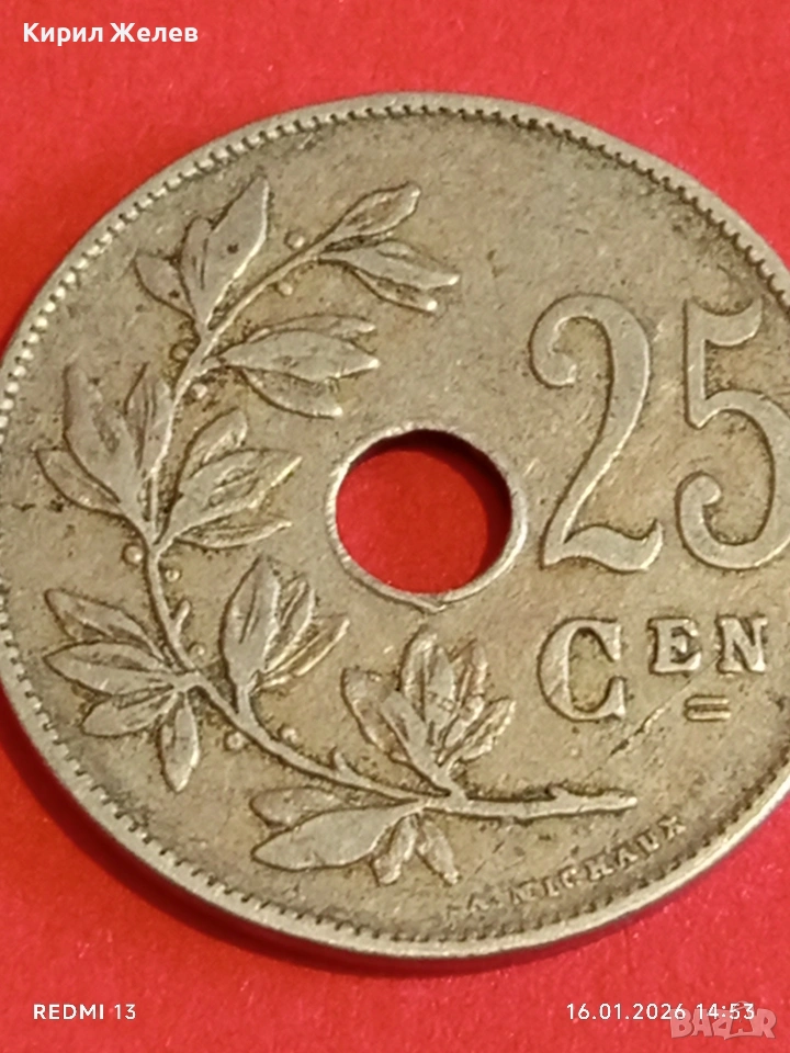 Монета 25 сантима 1913г. Кралство Белгия Крал Албер първи за КОЛЕКЦИЯ 23074
