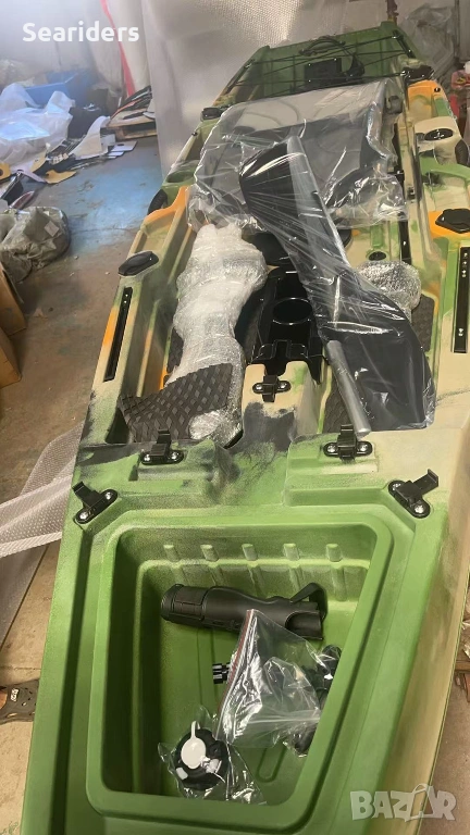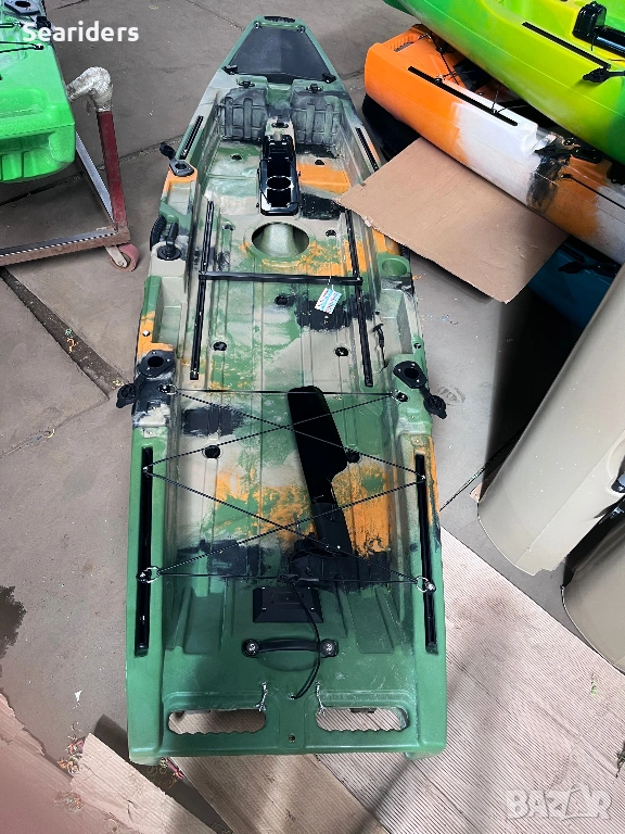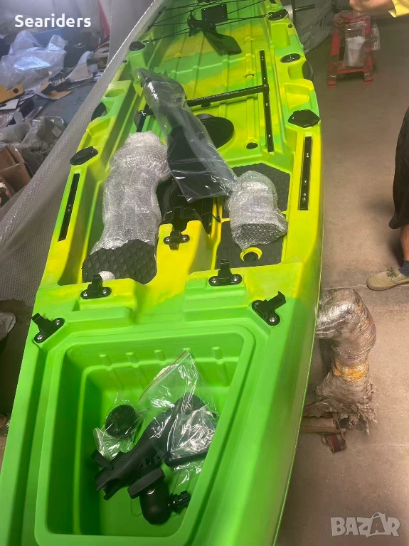 /На първите три снимки виждате модела на каяка и педалната система, с която разполага. На следващите са снимките на конкретните каяци, направени в производствената база/