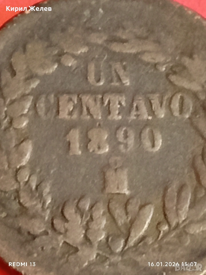 Рядка монета 1 сентаво 1890г. Мексико за КОЛЕКЦИЯ ДЕКОРАЦИЯ 53077 → Обява 53122327