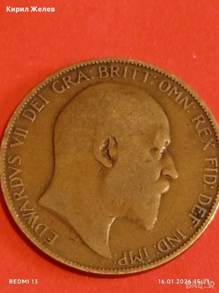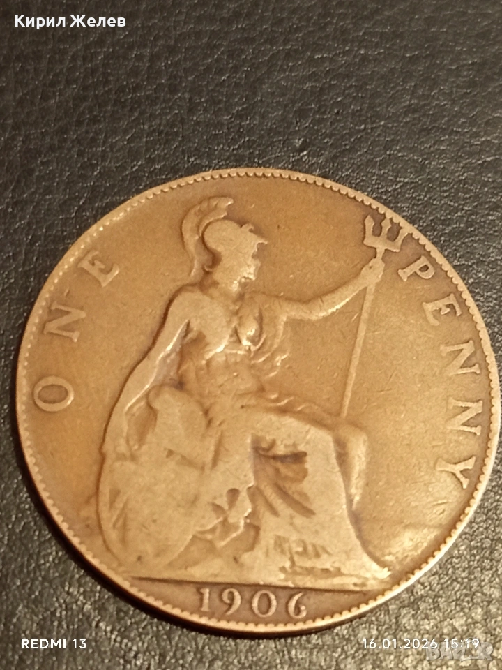 Монета 1 пени 1906г. Великобритания Крал Едуард седми за КОЛЕКЦИЯ 53118 → Обява 53122530