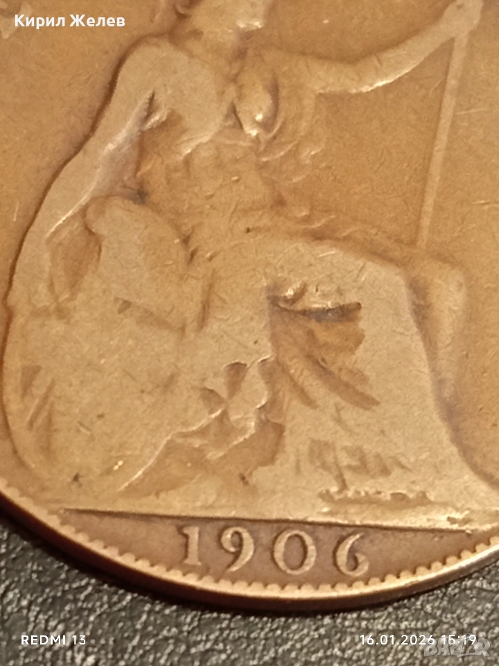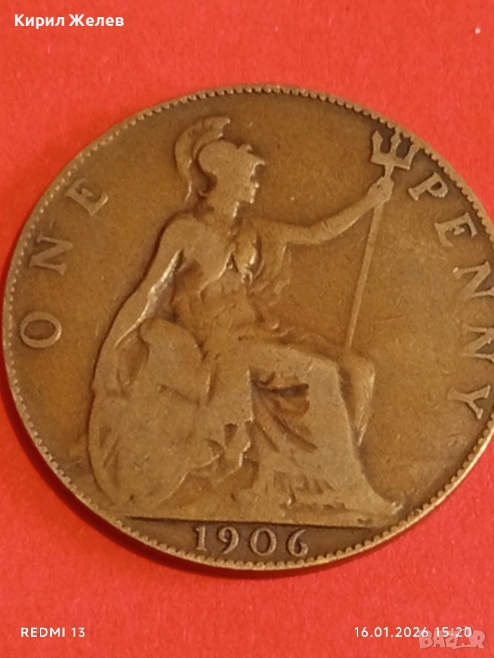 Монета 1 пени 1906г. Великобритания Крал Едуард седми за КОЛЕКЦИЯ 53118