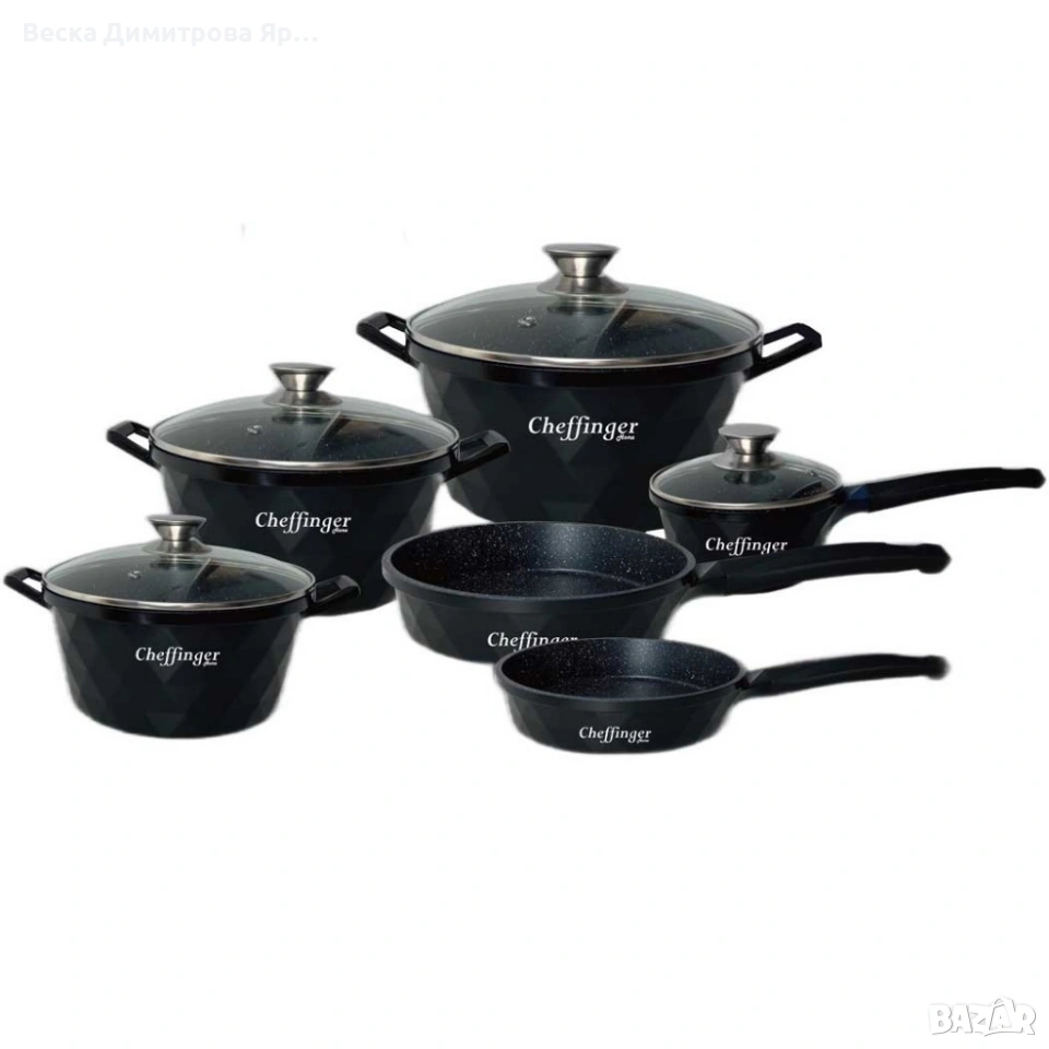 Премиум комплект съдове за готвене 12 части с мраморно покритие Cheffinger