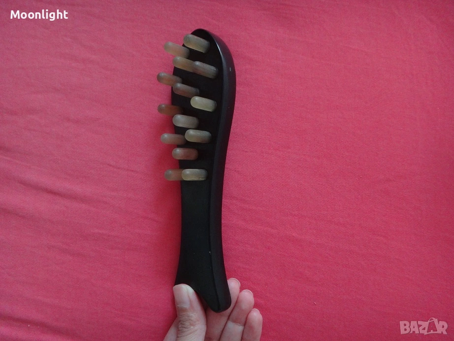Масажната четка за скалп е с мултифункционално действие, вдъхновена от акупунктурата. Активира кръвообращението, стимулира растежа на косата, намалява сърбежа и раздразненията.