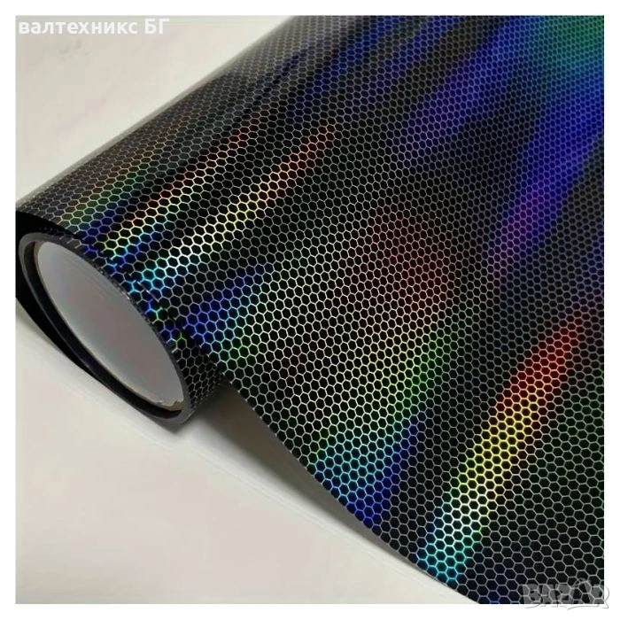 Фолиото е изработено от висококачествен PVC материал тип пчелна пита ефект и лек холограмен блясък, който променя цвета си в зависимост от светлината и ъгъла на гледане.