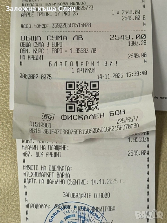 Нов телефон разпечатън за преглед . Закупен от Техномаркет Варна на 14.11.2025г има две години гаранция . Телефонът не е стартиран тоест не е включван .