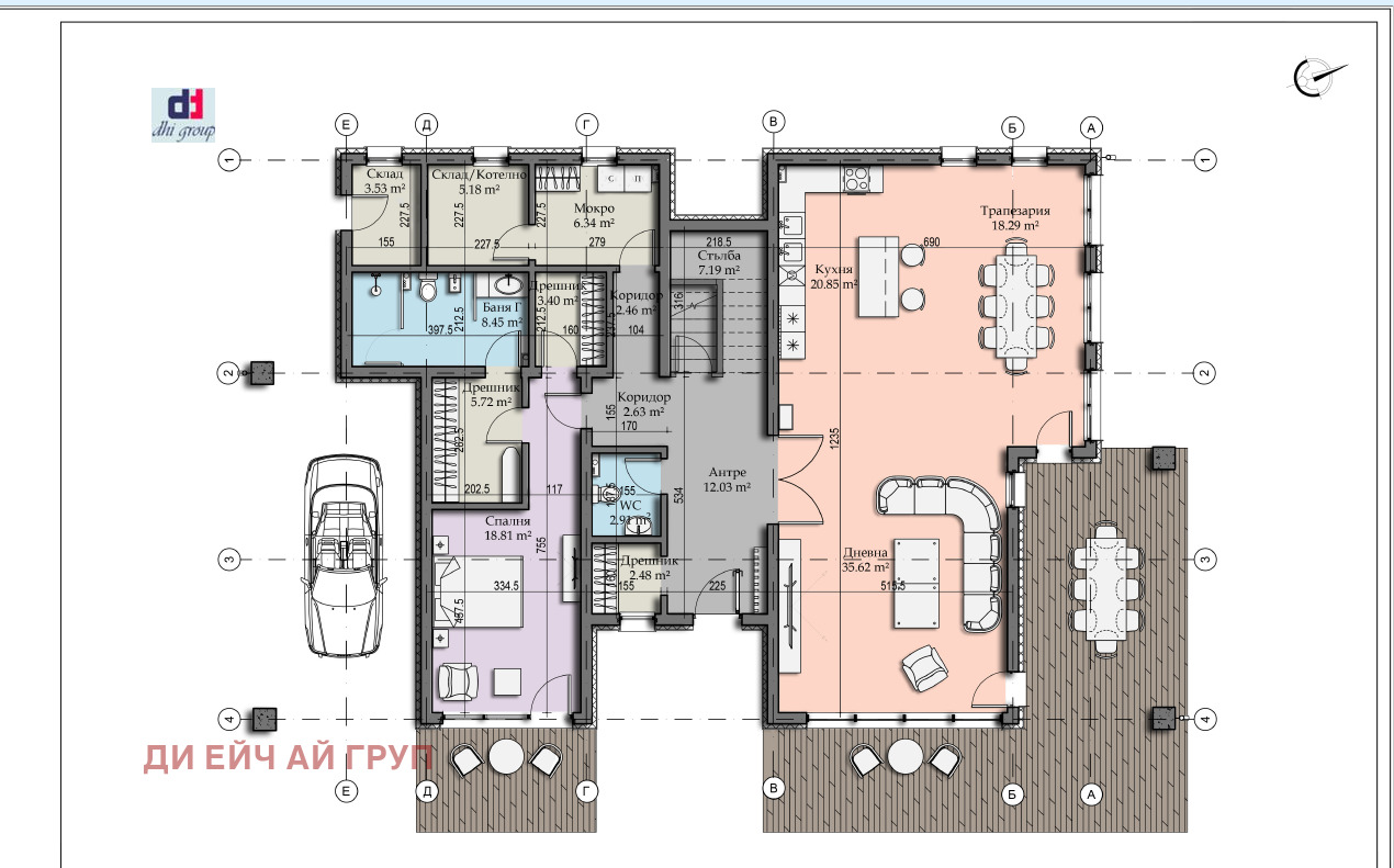 ДИ ЕЙЧ АЙ ГРУП представя новопостроена еднофамилна къща с Акт 16.Къщата е построена в самостоятелен УПИ от 1098 кв.м в екологичното селище Delta Hil.