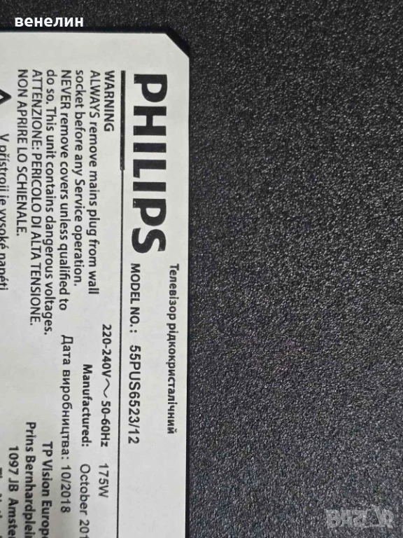 Частите са свалени от телевизор със счупена матрица PHILPS 55PUS6523/12