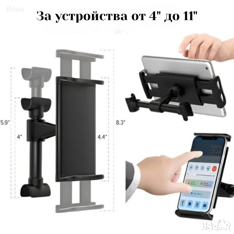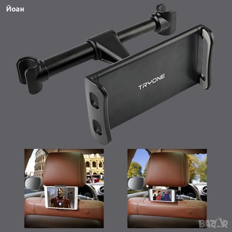 Регулируема стойка за телефон и таблет за седалка на автомобил – 360° въртене → Обява 53122993
