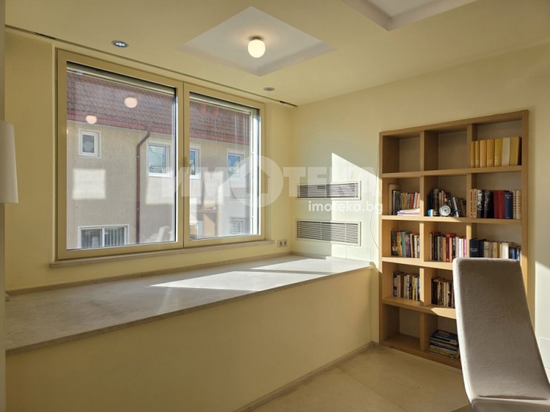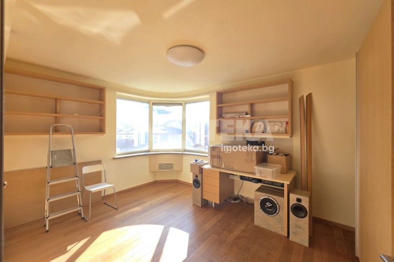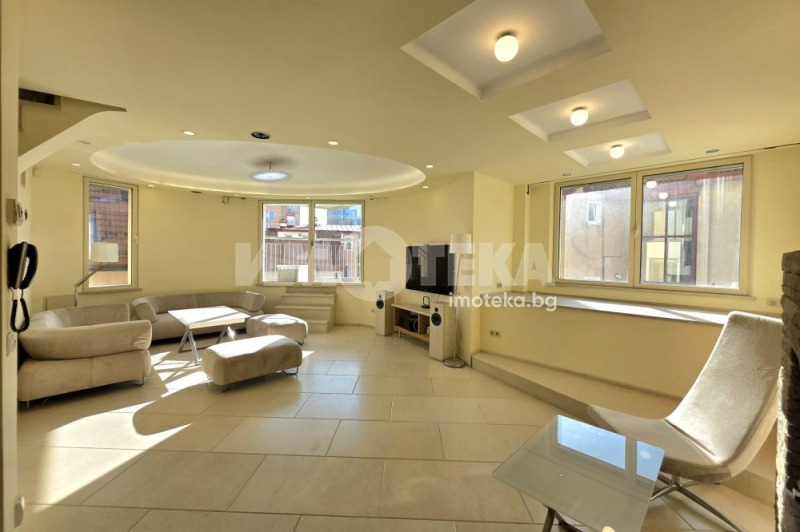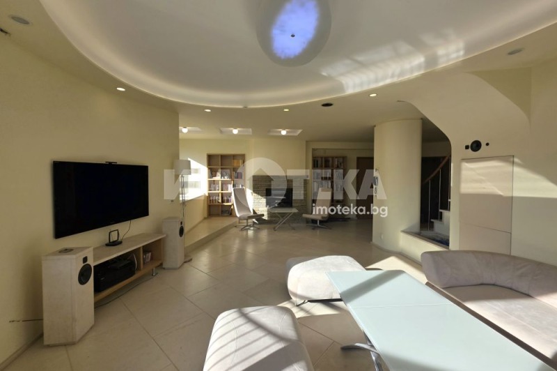 Многостаен апартамент на три нива в квартал Манастирски ливади-запад със застроена площ от 225 кв.м. На първо ниво антре, дневна с трапезария и кухненски бокс, спалня, баня с тоалетна, мокро помещение и тераса. Второ ниво се състои от емпоре, спалня, детска стая, две бани с тоалетна и тераса. Трето ниво - дневна с кухненски бокс, баня с тоалетна и тераса. На последно ниво има невероятна панорамна тераса с гледка към Витоша.