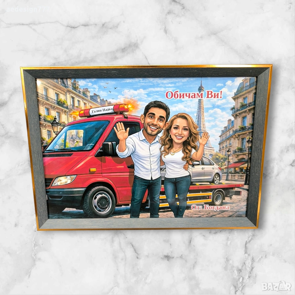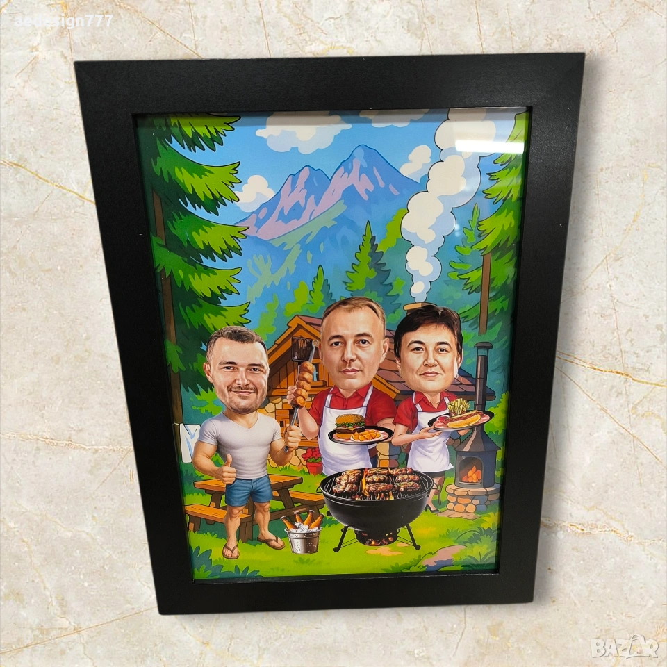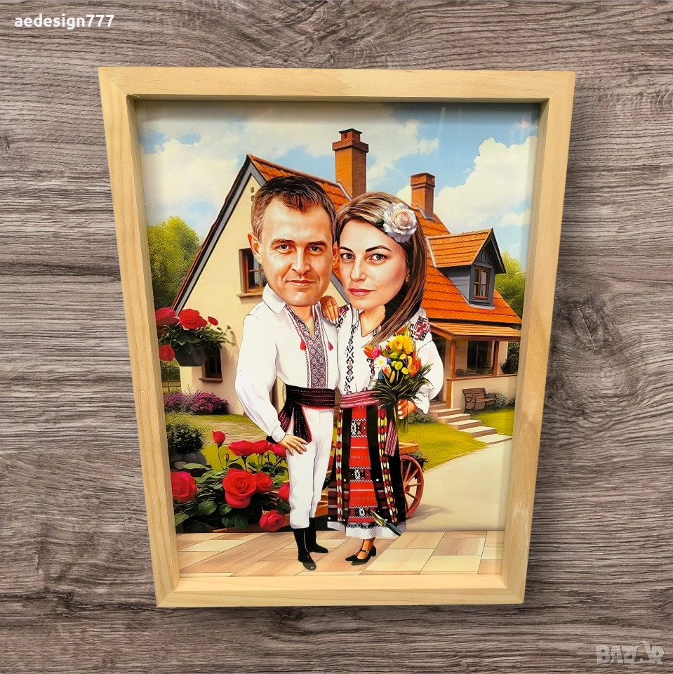 Карикатура с рамка А4Формат 20×30см -Цена-15.34евро- 30лв до две лица. Карикатура с рамка 33×43см-Цена- 30.67евро- 60лв до две лица. Карикатура с рамка 35×50см- Цена- 35.80евро- 70лв до две лица За всяко следващо лице се доплаща 5.11евро- 10лв