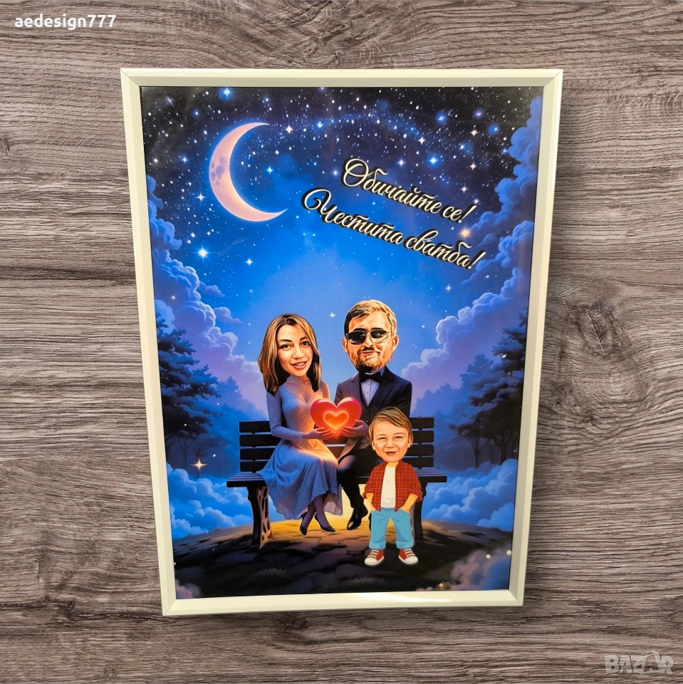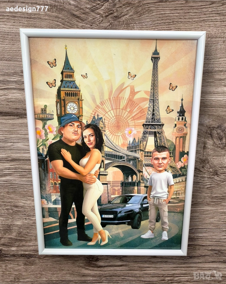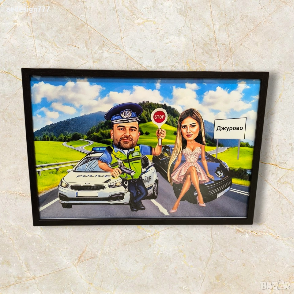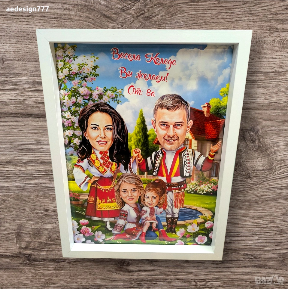Карикатура с рамка А4Формат 20×30см -Цена-15.34евро- 30лв до две лица. Карикатура с рамка 33×43см-Цена- 30.67евро- 60лв до две лица. Карикатура с рамка 35×50см- Цена- 35.80евро- 70лв до две лица За всяко следващо лице се доплаща 5.11евро- 10лв