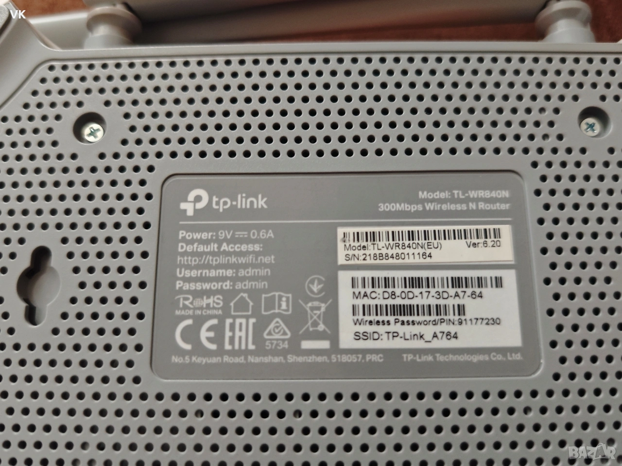 Безжичен рутер TP-LINK TL-WR840N, 2.4 GHz, 300Mbps, 10/100 → Обява 53123195