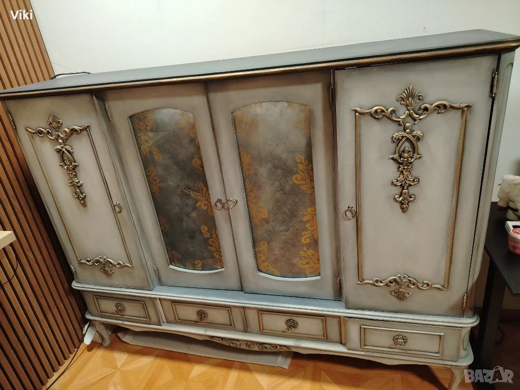 Здравейте продавам масивен бароков бюфет. Бюфета до колкото разбрах е направен от дизайнер и е с нова много красива визия. Размери: височина 142 см, широко 186см, дълбоко 45см. Бюфета е в добро състояние, разглобен, и готов за транспорт. Има нужда от леки поправки но няма нищо фрапиращо. Надявам се да намери своето подходящо място.