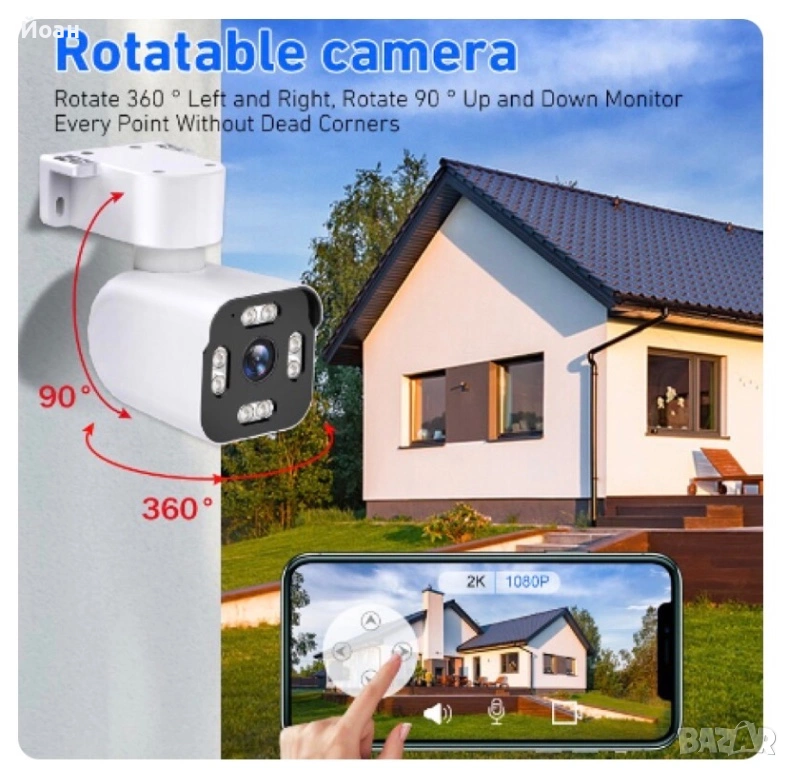 360° въртене, осигуряващо пълно покритие на наблюдаваното пространство;