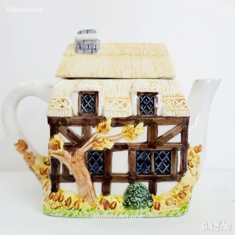 Чайника е красиво моделиран, има си и керемиден покрив.