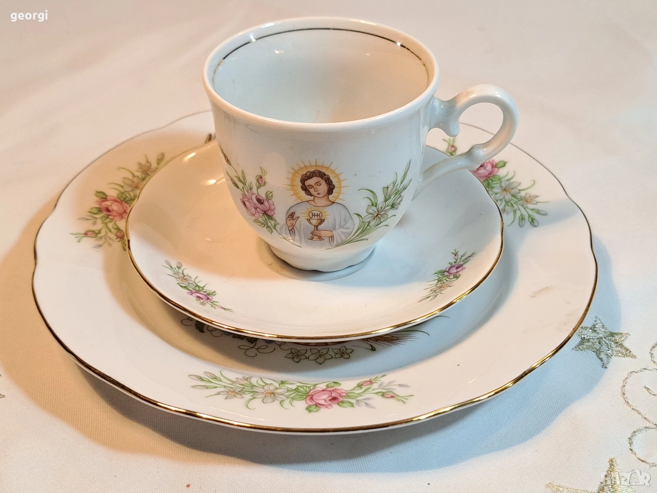 немски порцеланов троен сет за кафе с църковни мотиви 32/3 → Обява 53123767