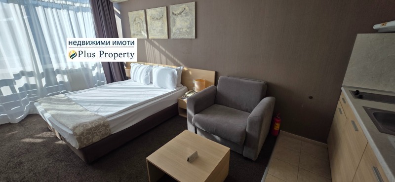 Състои се от входно антре с гардероб, просторна стая с кухненски бокс, оборудван с керамичен котлон, абсорбатор, хладилник и кафе машина, голямо двойно легло с нощни шкафчета, фотьойл и телевизор. Банята е луксозно оборудвана с вана, мивка и тоалетна.