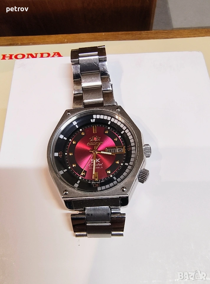 Orient SK automatic в перфектно състояние.Японски.Самонавиващ механизъм.Стъкло harg crystal.Кутия, инструмент за удължаване на верижката.Резервни звена.