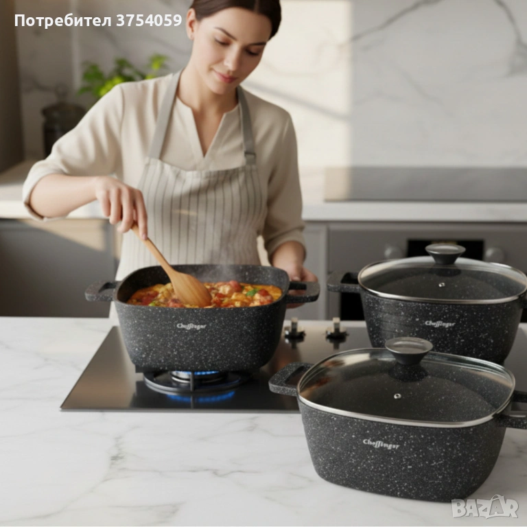 Комплект тенджери – Cheffinger от 3 части с мраморно покритие и капаци + подарък 2 ръкавици