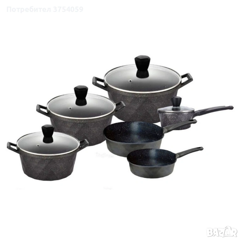 Премиум комплект съдове за готвене 12 части с мраморно покритие Cheffinger– Тенджери, тигани и касер