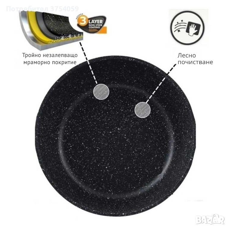 Материал: метален корпус с мраморно незалепващо покритие;