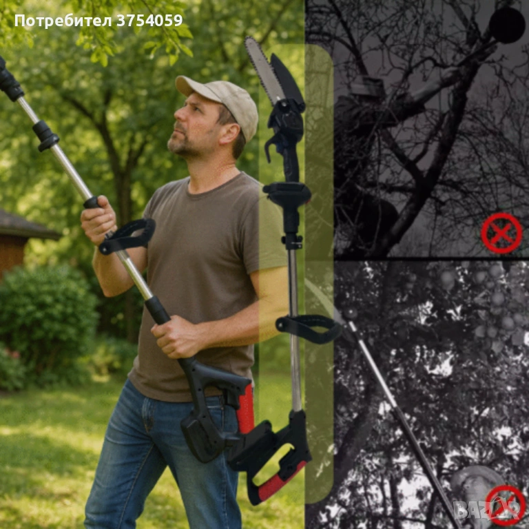 Тип продукт: Мини акумулаторен верижен трион + телескопичен удължителен прът;