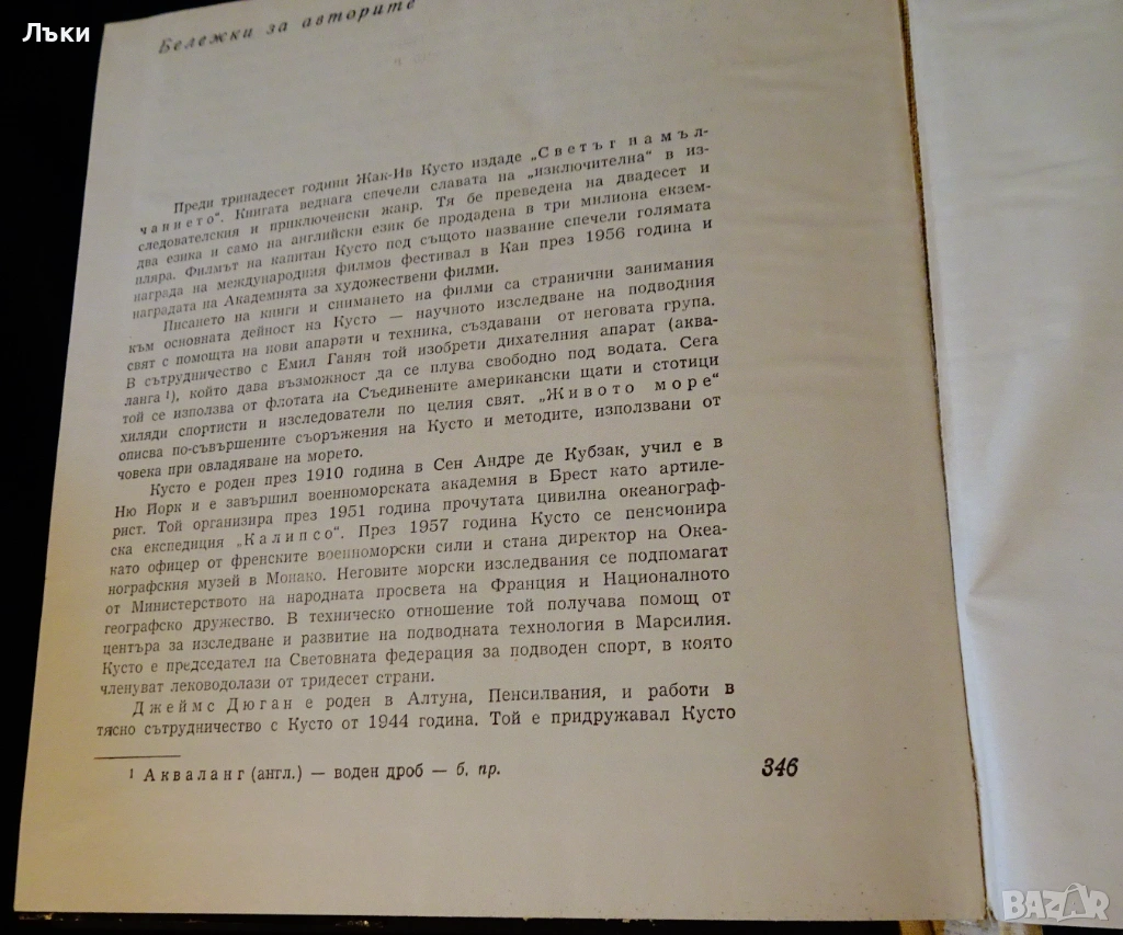 Стара книга от личната ми библиотека – Живото море.Автор Жак-Ив