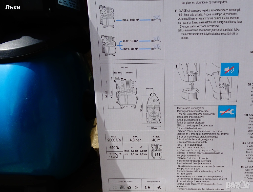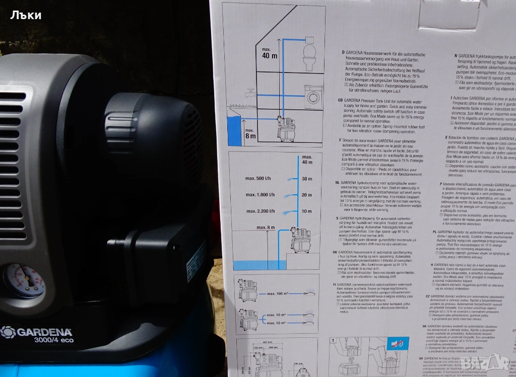 Хидрофор,хидрофорна помпа,хидрофорна уредба Gardena,модел 3000/4 ЕСО,производител Husqvarna с разширителен