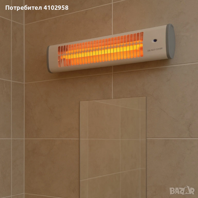 Тип: Стенна кварцова отоплителна печка;Мощност: 400W / 800W / 1200W;Нагреватели: 3 кварцови;Сертификат: IPX4 (влагоустойчива);Без циркулация на прахови частици;Корпус: Термоустойчива пластмаса;Защита от прегряване;Захранване: 220–240V;Размери (ДхШхВ): 54 х 13 х 14 см;Цвят: Бял.