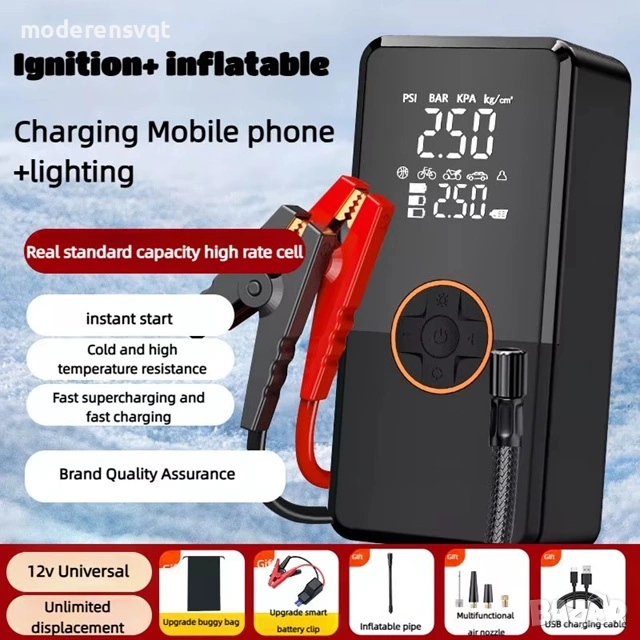 Преносим стартер компресор LED лампа 4в1 150 PSI батерия