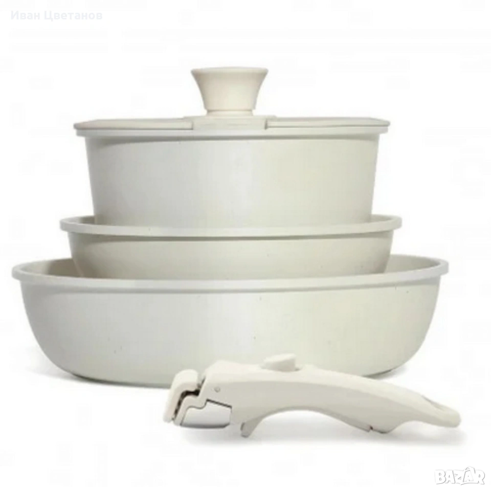 Комплект съдове Goldmann GM-1005 – 5 части с подвижна дръжка, мраморно покритие и индукция