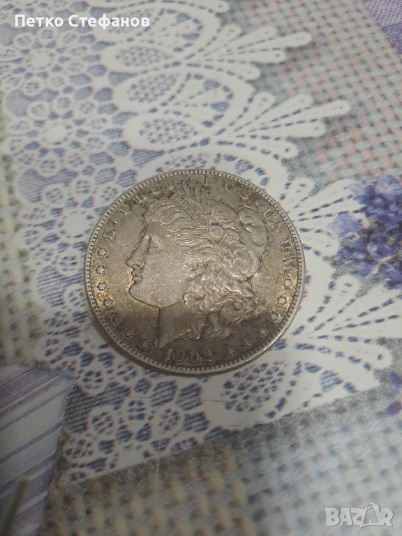 Сребърен долар "Морган" от 1902 г. , снимка 1 - Антикварни и старинни предмети - 53125736 Сребърен долар "Морган" от 1902 г. , снимка 2 - Антикварни и старинни предмети - 53125736 1/2